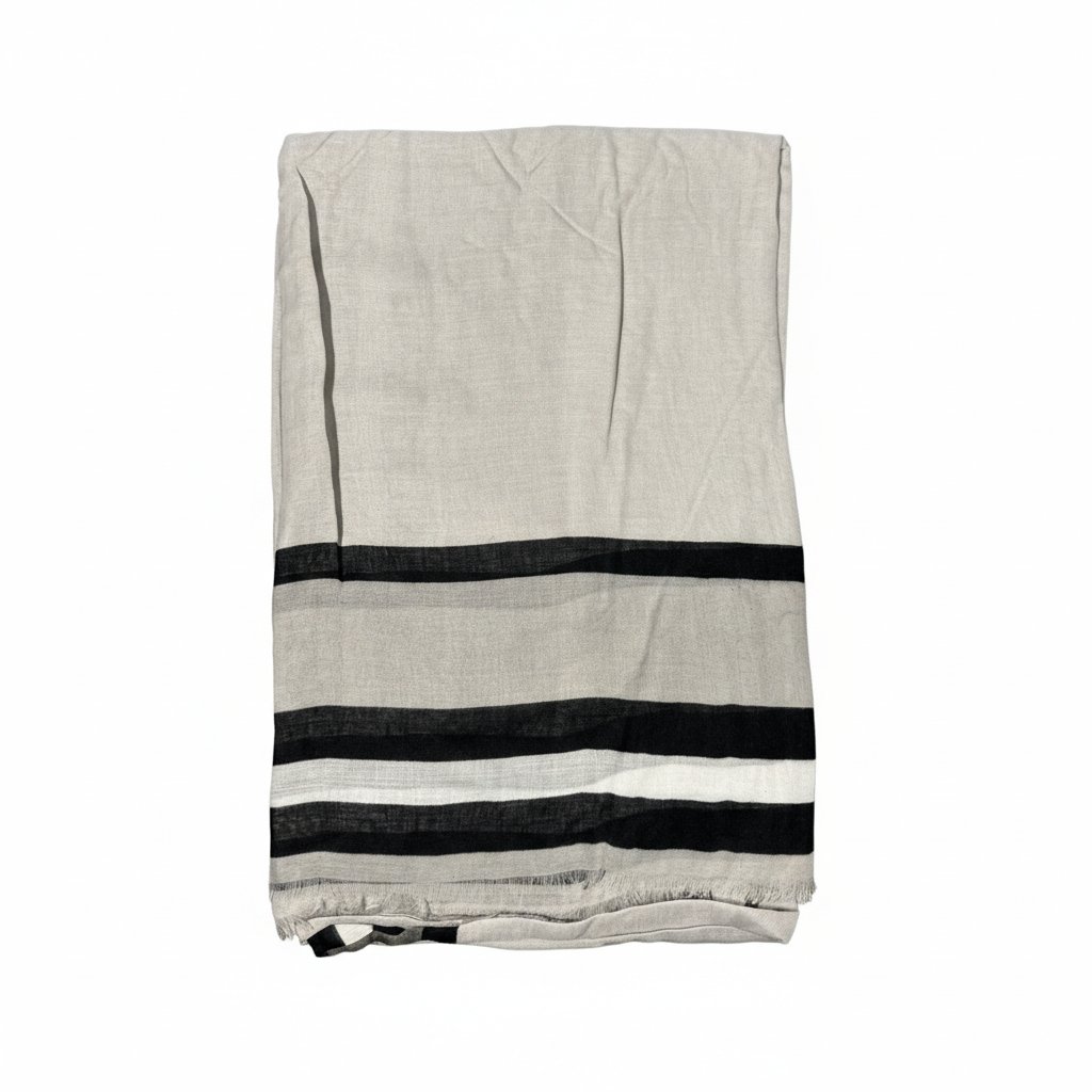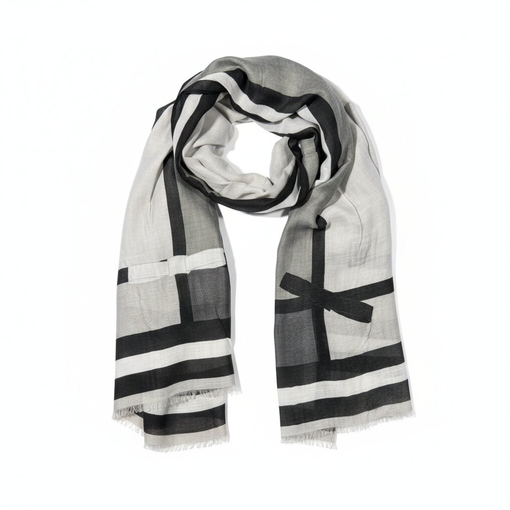 Kontrastní lemy a mašlička dodávají šále elegantní a ženský vzhled. Univerzální použití